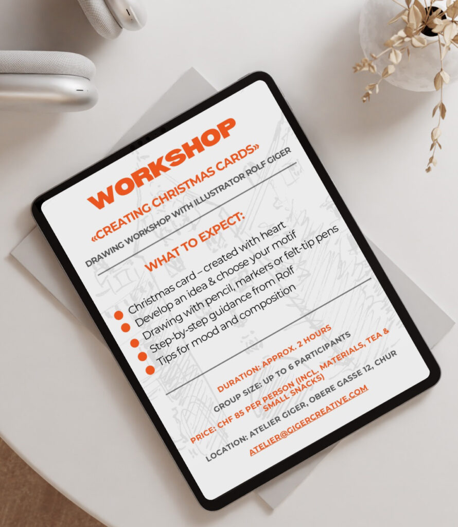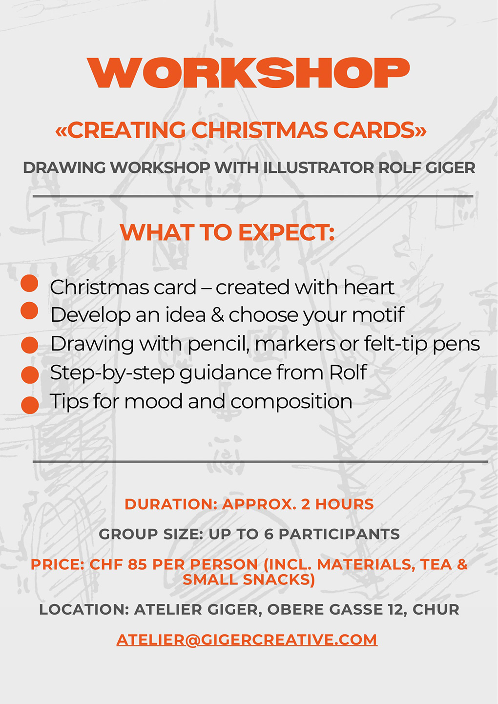 In this course, you will create your own Christmas card – personal, individual and heartfelt. Together with illustrator Rolf Giger, you choose a motif and bring your idea to life on paper using simple tools such as pencils, markers or felt-tip pens.