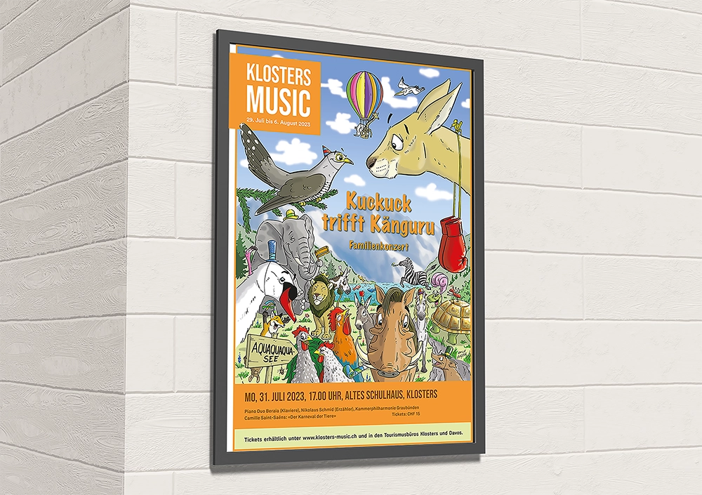 Visuelle Gestaltung klassischer Musik erhält durch unsere Illustrationen für Klosters Music eine besondere Note. Die Gestaltung der Plakate, Banner und Sticker für die Stiftung Kunst & Musik Klosters Music war eine spannende Aufgabe, bei der Kreativität und Emotionen Hand in Hand gingen.
